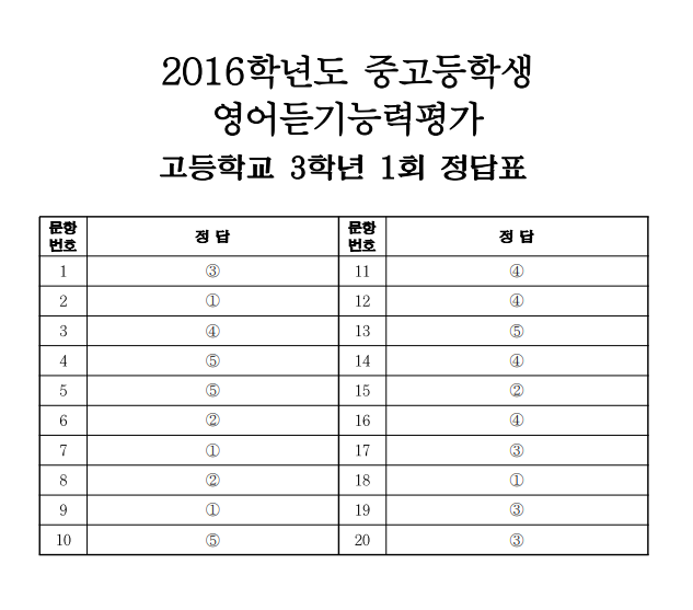 2016년 고3 전국영어듣기능력평가 1회차 (문제 및 정답)